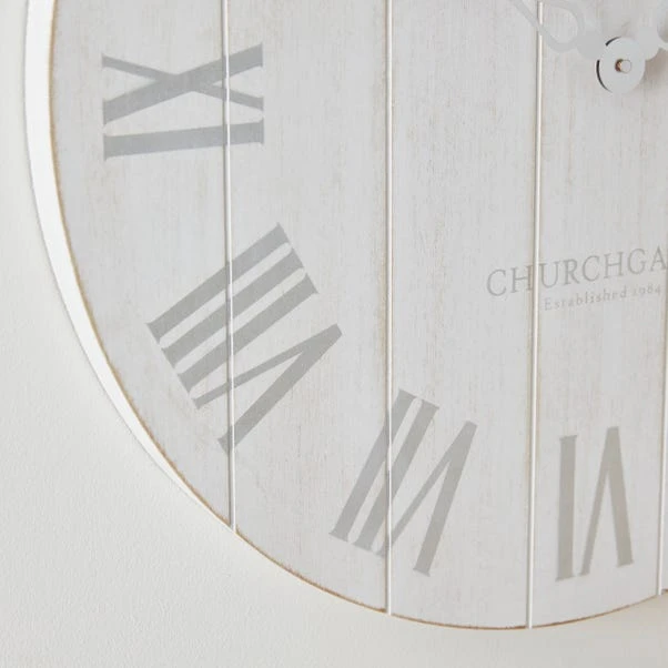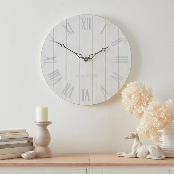 This stunning circular clock with a distressed wooden look has a diameter of 60cm, making it an eye-catching piece within the home. The cream colourway complements an array of home decors, as well as looking stylish and attractive.