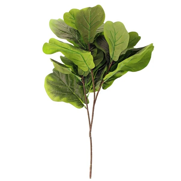 Ideal for vase display alone or as part of an arrangement, this beautiful artificial fiddle leaf spray will bring the outside in, without the hassle! As an abundance of large leaves, this piece will add a tropical look to any room of the house and is an easy way to introduce greenery to the home.