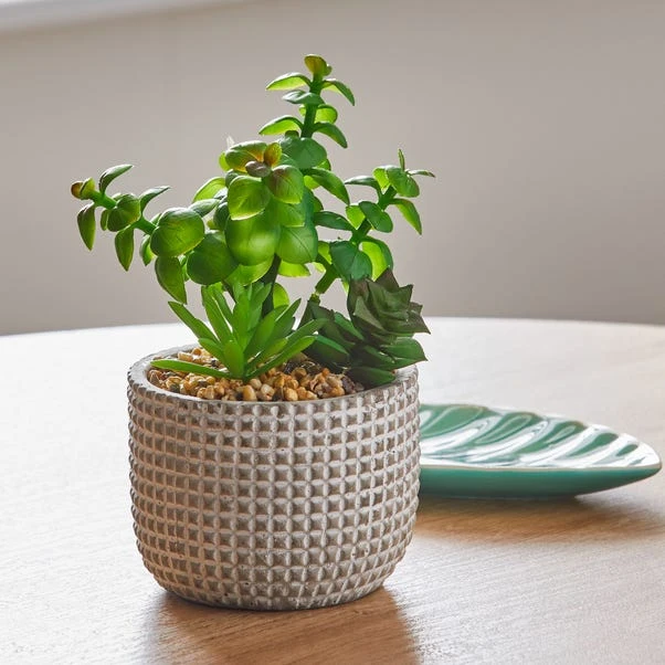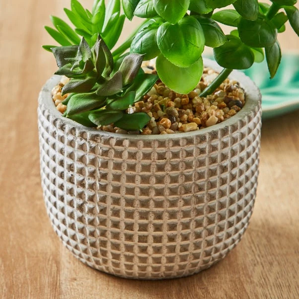 Dunelm Artificial Mini Succulent Garden In Cement Pot