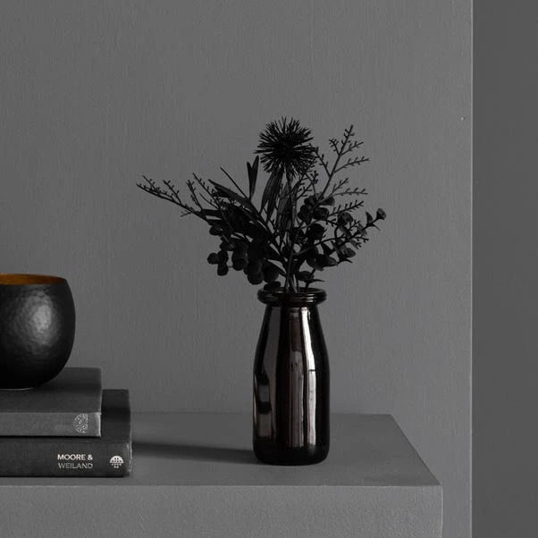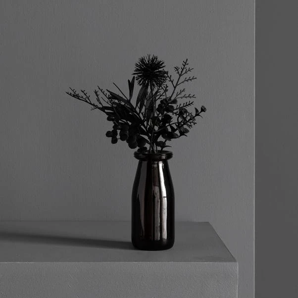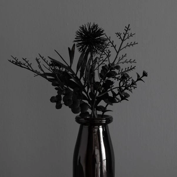 Dunelm Black Floral Arrangement In Glass 26cm