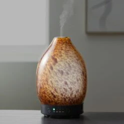 Featuring the Tortoiseshell Glass Electronic Diffuser with a beautiful brown finish. This electric diffuser is perfect for your home, blending in and complementing an array of decors beautifully. With a tortoiseshell glass finish and black finish at the base, this diffuser will bring a calm and relaxed vibe to any room of the house, making the perfect gift to either yourself or a friend.