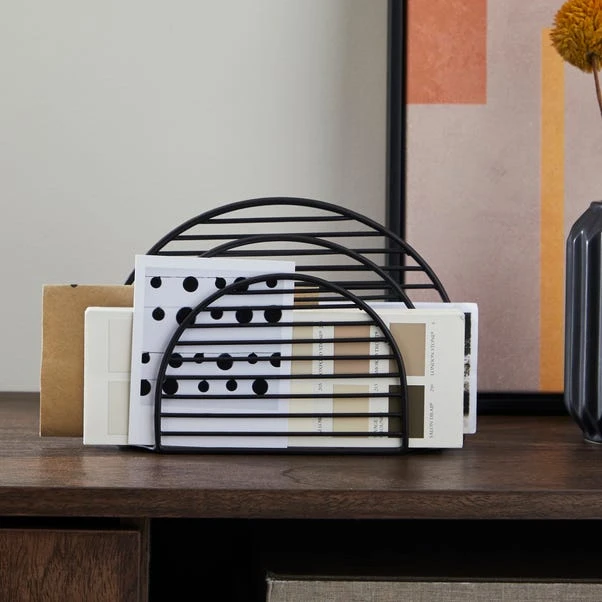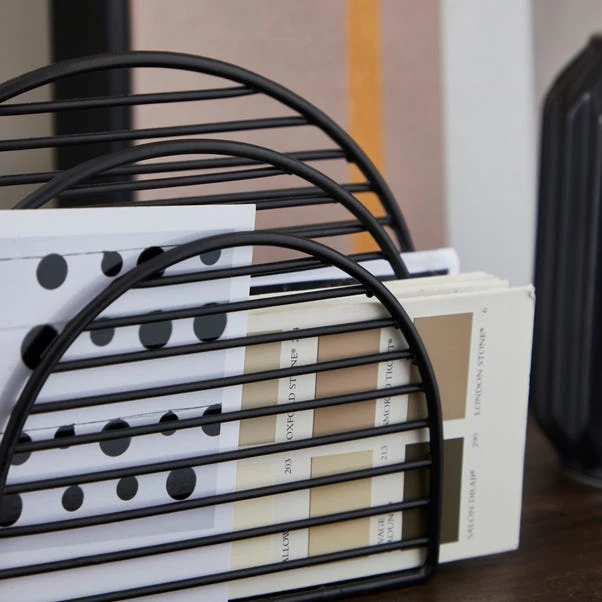 Made from iron, this stylish and modern wire letter rack is perfect for adding a contemporary feel to your home. In a matte black finish, this latter rack keeps you nice and organised. Other coordinating black wire home decor items are also available.